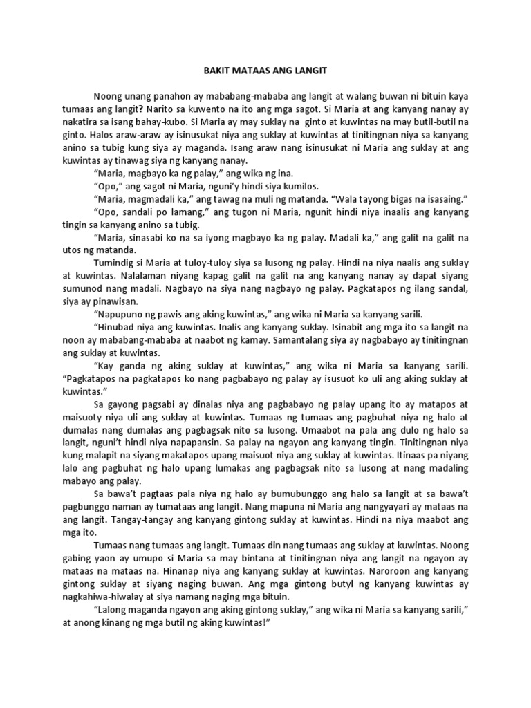 Bakit Mataas Ang Langit Docx Bakit Mataas Ang Langit Noong Unang Panahon Ay May Mag Ina Ang Nakatira Sa Isang Bahay Kubo Ang Anak Na Si Maria Ay May Course Hero